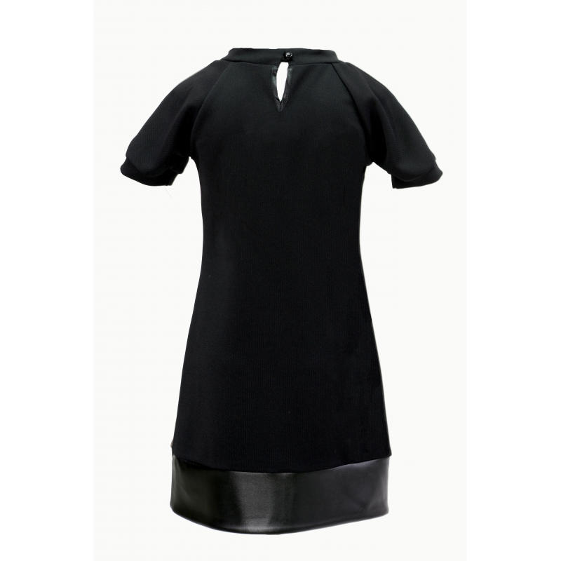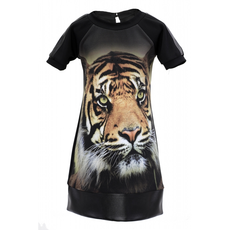 Стильная туника для девочки черного цвета с принтом тигра и черной вставкой из эко-кожи.В ростовке 4 штуки.