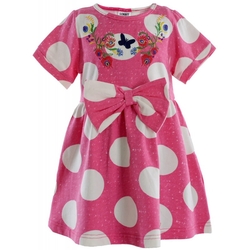Платье для девочки из натуральной ткани с ярким принтом, вышивкой и бантом впереди.В ростовке 5 штук. Возраст 1,5-6 лет.Рост 92-116 см.